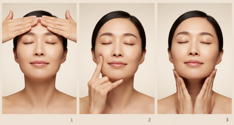 Joues : pincements légers index+pouce pour relancer la micro-circulation.